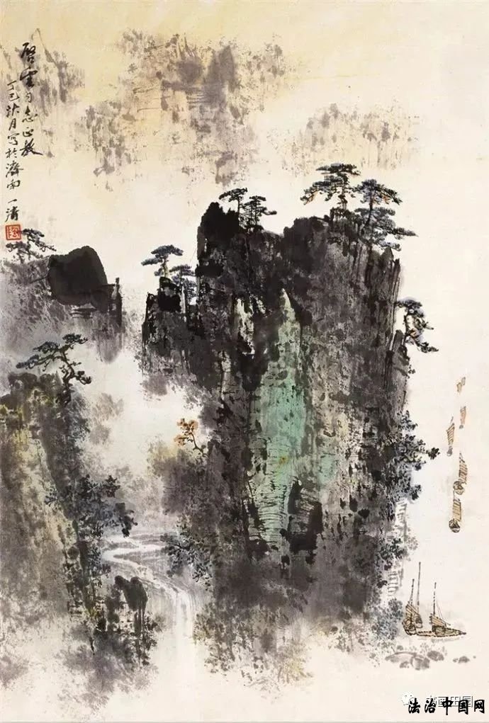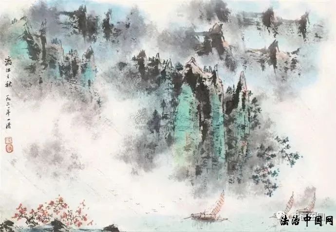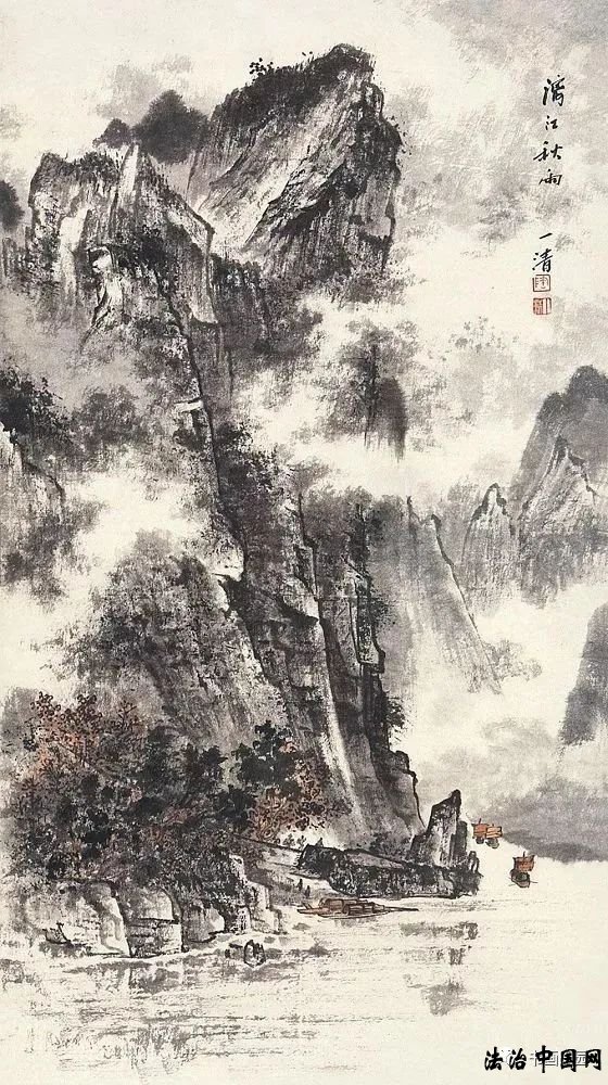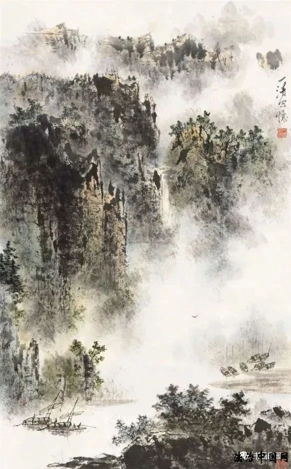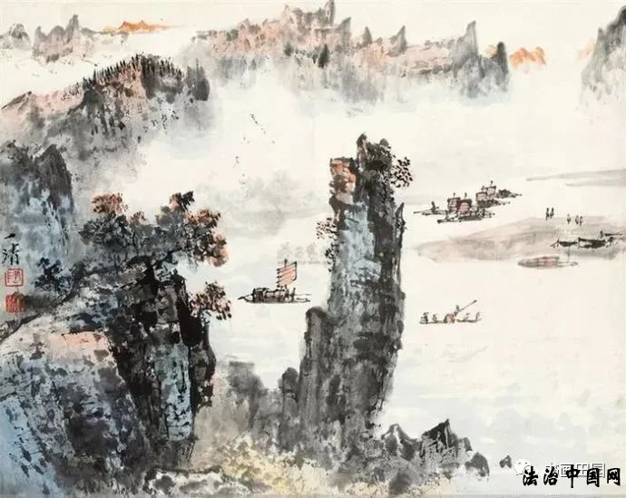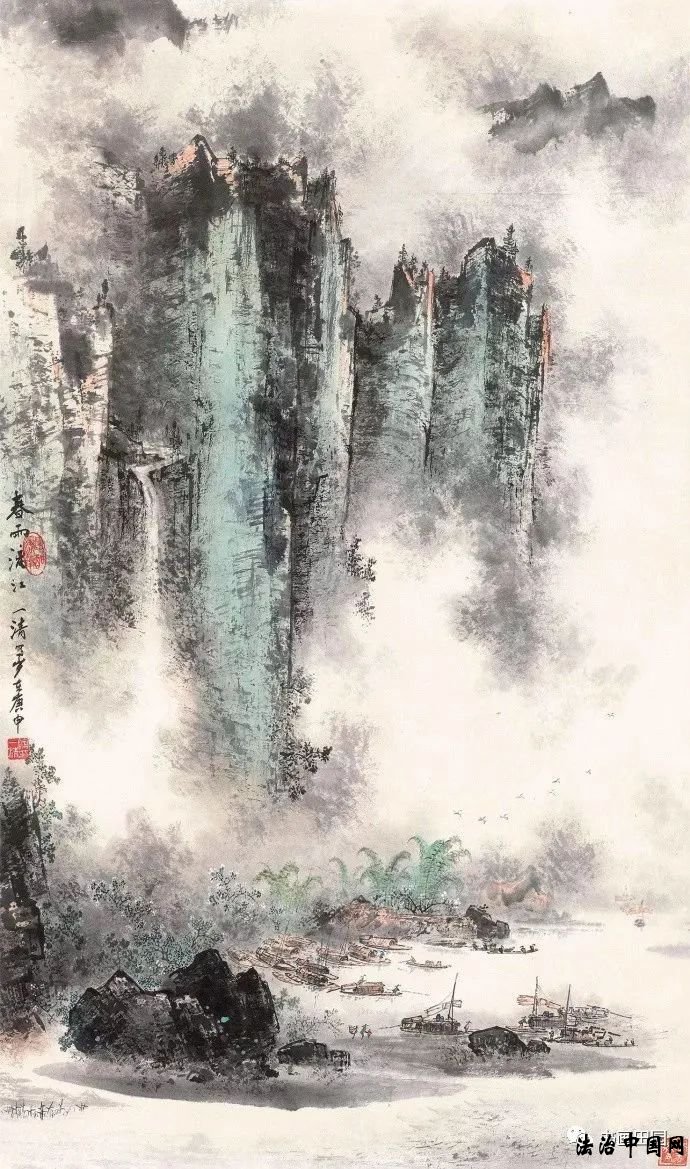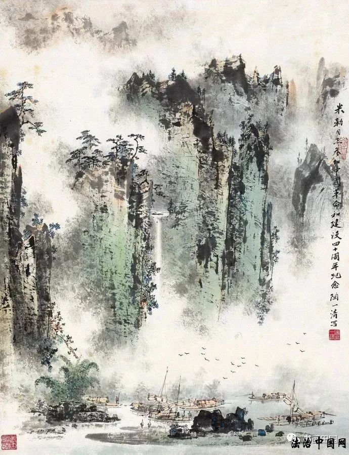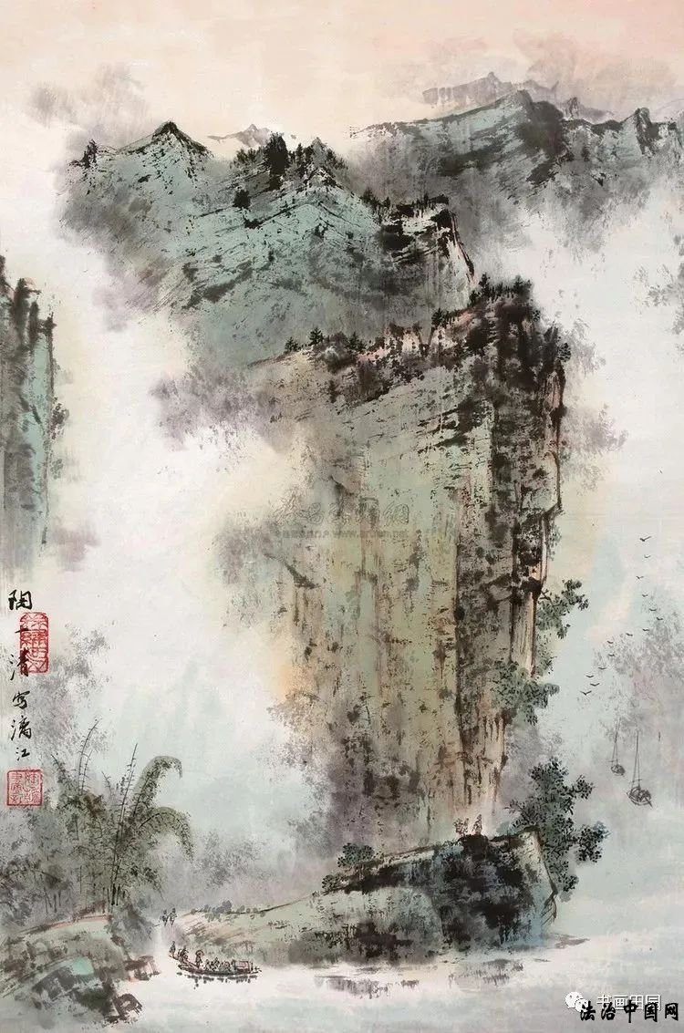 以上一组画是陶一清先生笔下的漓江山水作品,他在绘画创作中采取传统“以大观小”的处理方法,以形写神,把漓江之精髓活跃纸上。烟岚清奇之境,经一清先生之手刻画,亦呈妩媚。