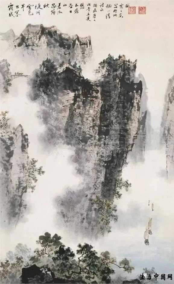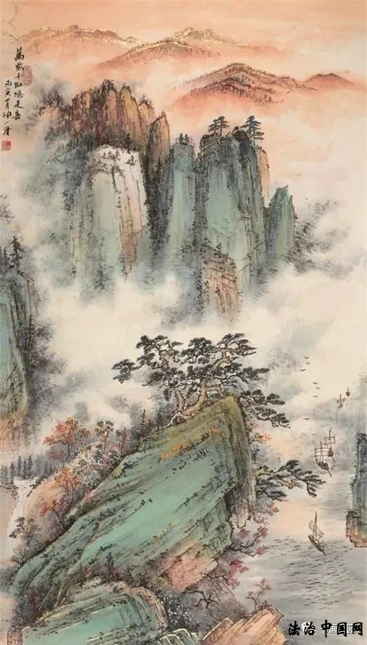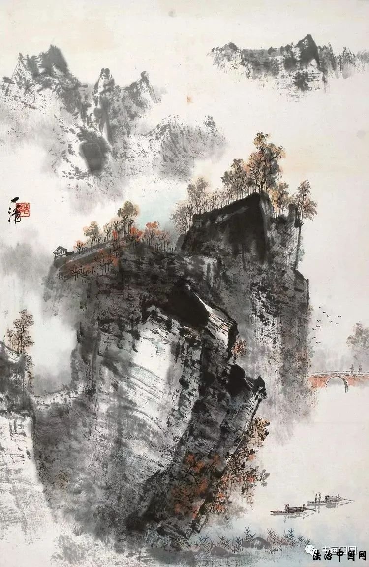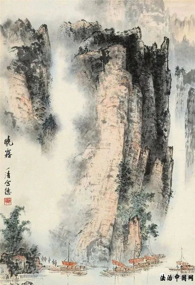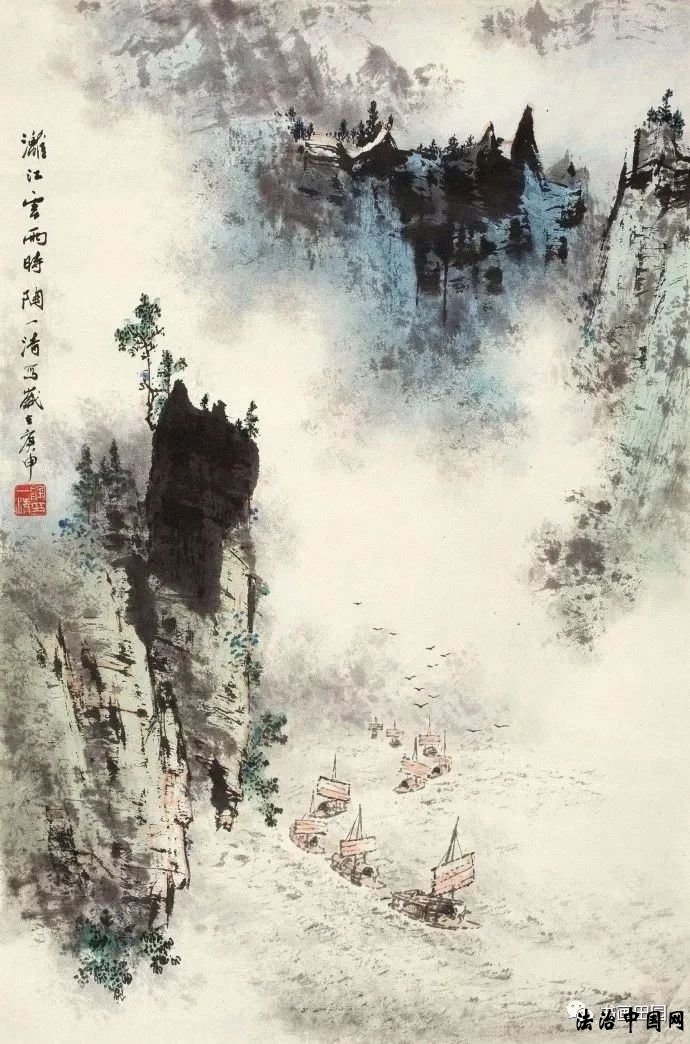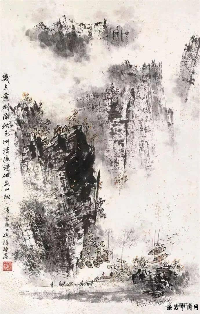 以上一组画是陶一清先生笔下的漓江山水作品,他在绘画创作中采取传统“以大观小”的处理方法,以形写神,把漓江之精髓活跃纸上。烟岚清奇之境,经一清先生之手刻画,亦呈妩媚。