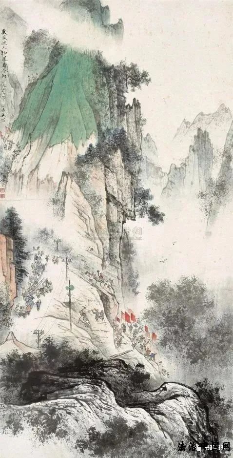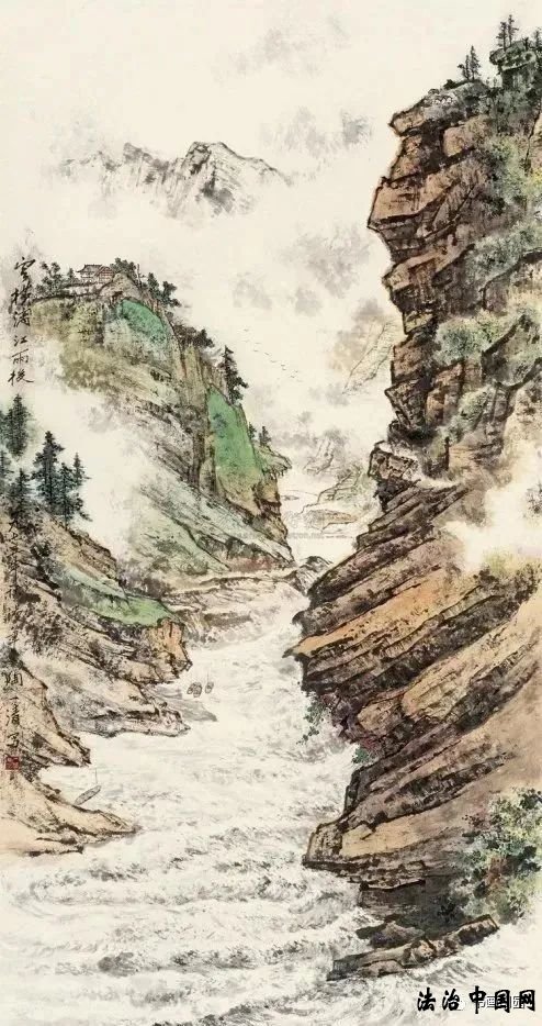 陶先生笔下作品有“远观其势,近收其致”之妙,笔墨芊秀、泼辣兼有之。喜作大画,笔墨不苟,构思严谨,青绿设色在传统的基础上有所创新,为海内外人士所称赞。