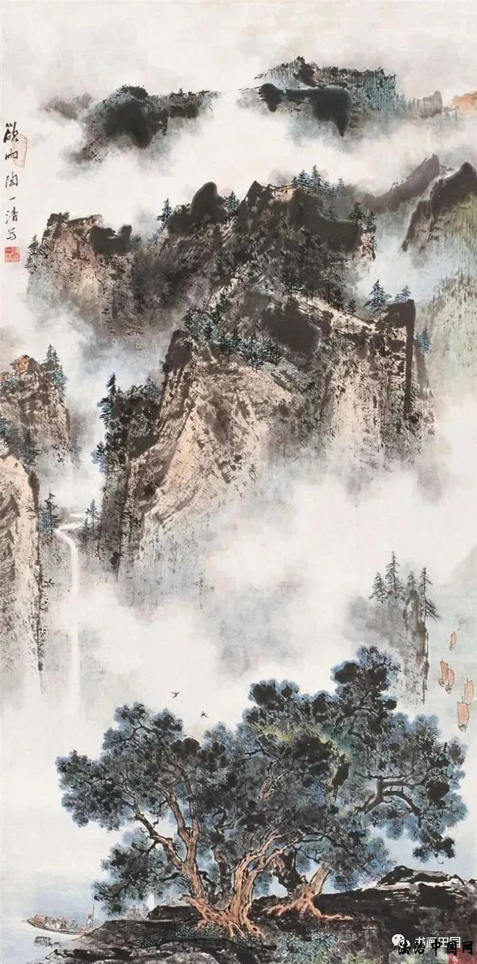 陶一清先生的山水作品既有典雅的韵味,又有时代的气质,其作品无论是峰峦叠嶂、屋阁人物,亦或是飞泉流瀑,浮云远帆,无不体现画家对传统绘画意境的倾心和追慕。