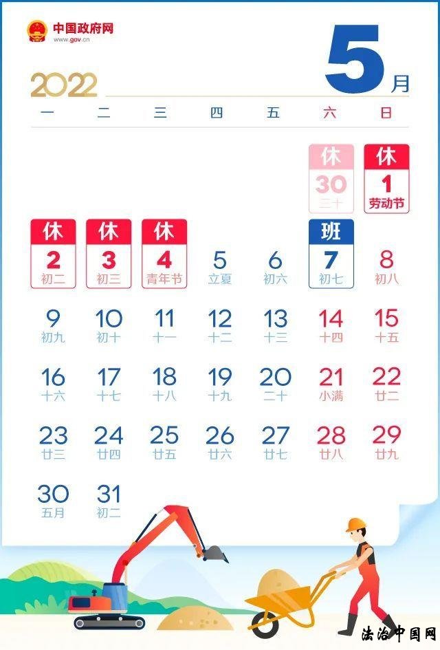 根据《国务院办公厅关于2022年部分节假日安排的通知》,2022五一放假为:4月30日至5月4日,放假调休共5天。4月24日(星期日)、5月7日(星期六)为正常工作日。 根据《重大节假日免收小型客车通行费实施方案》,劳动节免费时段从节假日第一天(4月30日)凌晨开始,节假日最后一天(5月4日)24点整结束。免费通行的车辆范围为7座及以下小型客车。 需要注意,如有外出计划,要事先了解目的地的疫情防控政策,注意做好个人防护。