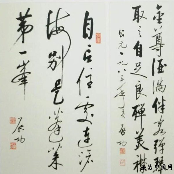 如果说笔法是蓝昌顺掌握的书法秘籍,那么用墨则显于他对书法品质的天工把握。书法家群体普通重视笔法,有忽视用墨的情景,蓝昌顺却是依墨写意境的功深之人。他在书法创作中具有很强的施墨技能。施徽墨之明,明黑效果相当难得。借助墨色的变化,无限劲增书法的表现力,独有墨韵天工的书法表现语言。
