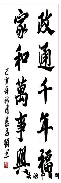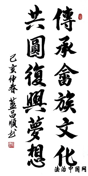 著名书法家蓝昌顺是一位文化视野非常广博的艺术家。他的书法诸书皆成,以广泛的文化包容性独成风采,悦目成大观。他的书法不囿于一门之碑,也不拘于一家之帖,而是在书法文化的海洋里面,纵游碑帖两学,汲取众家之长,合铸自己的艺术风格。