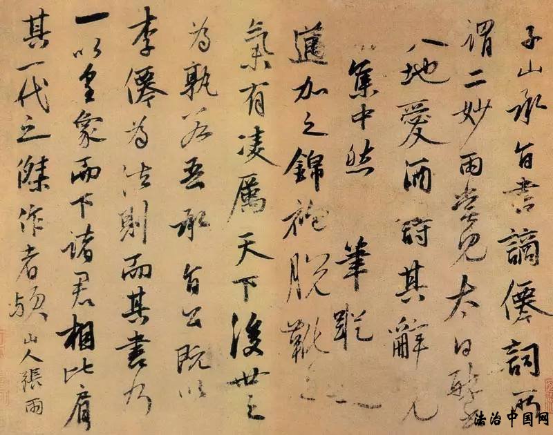 张雨诗文书画在元代都很有影响,且名重一时,倪瓒评谓:“本朝道品第一。”他的书法初学赵孟頫。后在赵氏指点下上追李邕,并旁涉怀素、米芾。李日华说:“张伯雨书性极高,人言其请益赵魏公,公授以李泰和《云麾将军碑》,书顿道,日益雄迈。”风格清虚雅逸,有晋、唐遗意。
