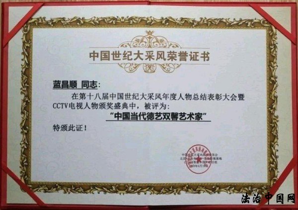 2009年被评为“第8届中国时代十大创新人物; 2010被杭州市政府评为杭州市中介服务业行业标兵; 2011年荣获“中国之星·最受尊敬时代商标专家顾问”; 2013年7月写的《品牌规划是企业发展的大事》一文,在第六届中国管理科学大会上被评为优秀论文一等奖; 2018年5月18日在第十八届中华世纪大采风年度总结表彰大会暨CCTV电视人物颁奖盛典荣获“中国当代德艺双馨艺术家”; 2018年8月由华艺书韵文化研究院出版《2018“文化中国”聚焦当代艺术名家》书画专刊; 2018年入编《中国一线书法家》10人合集; 2018年10月书法作品《腾飞》和《海纳百川》被西安世博园珍宝博物馆收藏; 2018年10月被中企报盟信息科学研究院收入“中国书画名家库”; 2018年11月蓝昌顺介绍和书法作品入编人民日报《人民周刊》杂志社和中国国际报告文学研究会联合出版的大型文献《聚焦·四十周年》; 2018年12月被中南海国礼中心授予“国礼艺术大师”荣誉称; 2018年12月荣获“中印文化传承金砖奖”; 2018年入编中国未来研究会编辑出版的《见证中国70周年的时代先锋》; 2019年入编中国未来研究会编辑出版的《走向世界的中国学者》; 2019年1月被中国民族艺术研究院和北京艺联诗书画院评为“中国艺术金莲花奖”; 2019年5月参与中国民族建筑研究会书画艺术专业委员会在民族文化宫举办的“辉煌历程·民族脊梁”——庆祝新中国成立70周年民族书画家作品展; 2019年5月蓝昌顺书法作品被中华人民共和国外交部收藏; 2019年-2021年度被浙江省浙商研究会评为优秀会员; 2019年书法作品入编《中国收藏》杂志艺术特刊; 2020年入编1949-2020《中国书画家大百科》; 2020年入编《中国美术年鉴》; 2020年入编中国未来研究会编辑出版的《中国影响力人物》。 ![]() ![]() ![]() ![]() ![]() ![]() ![]() ![]() ![]() ![]() ![]() ![]() ![]() ![]() ![]() ![]() ![]() ![]() ![]() ![]() ![]() ![]() ![]() ![]() ![]() ![]() ![]() ![]() ![]() ![]() ![]() ![]() ![]() ![]() ![]() ![]() ![]() ![]() ![]() ![]() ![]() ![]() ![]() ![]() ![]() ![]() ![]() ![]() ![]() ![]() ![]() ![]() ![]() ![]() ![]() ![]() ![]() ![]() ![]() ![]() ![]() ![]() ![]() ![]() ![]() ![]() ![]() ![]() ![]() ![]() ![]() ![]() ![]() ![]() ![]() ![]() ![]() ![]() ![]() ![]() ![]() ![]() ![]() |