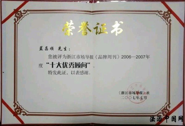 2007年被《市场导报》评为“十大优秀品牌顾问”;
