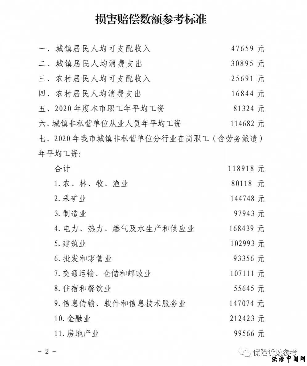 1、上海市统计局已公布2021年度上海市居民收入及支出相关数据,根据《上海市高级人民法院关于进一步推进人身损害赔偿标准城乡统一试点工作的意见》规定,即日起,上海地区人身损害赔偿案件中残疾赔偿金、死亡赔偿金均按照新标准82429元/年进行计算,被扶养人生活费均按照新标准51295元/年进行计算。
