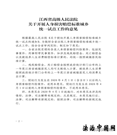 江西高院试点同命同价规定