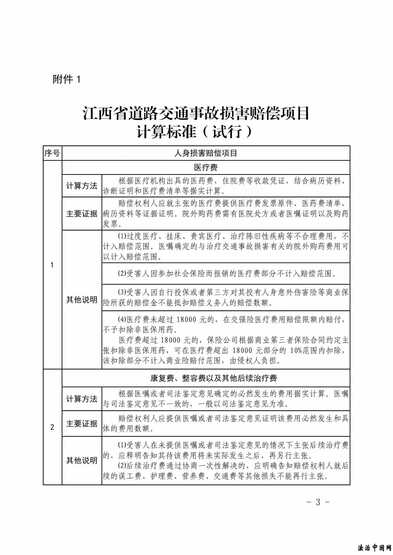 江西地区交通事故最新赔偿标准