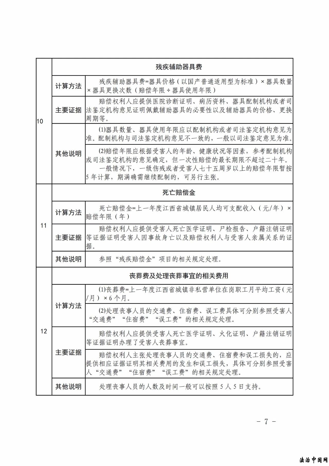 二、残疾赔偿金、死亡赔偿金按照政府统计部门公布的上一年度江西省城镇居民人均可支配收入计算。被扶养人生活费按照政府统计部门公布的上一年度江西省城镇居民人均消费支出计算。