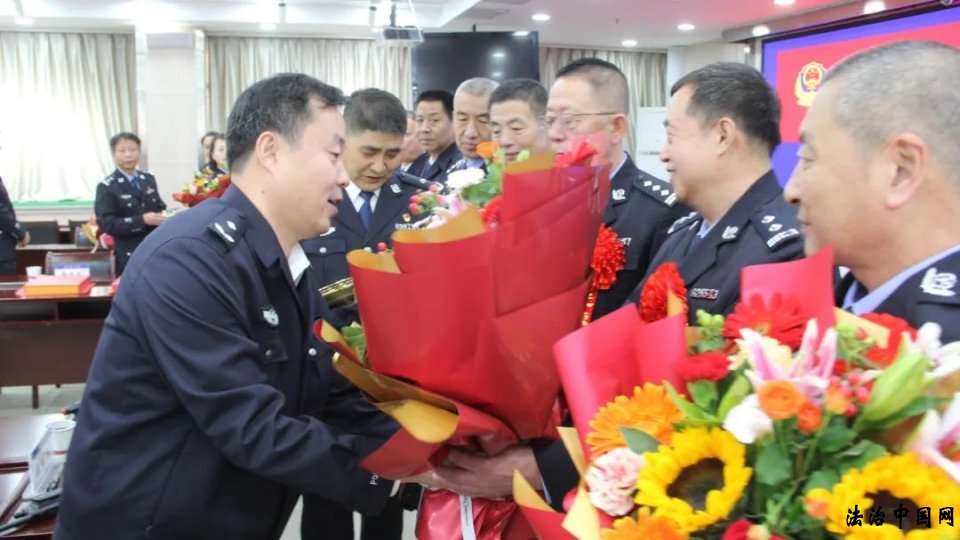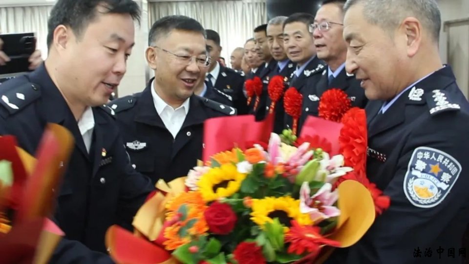 随后,支队政治处组织荣退干部集体奏唱人民警察警歌,重温入警誓词,并向警旗敬礼。孙志远常务副局长为荣退干警送花、敬赠纪念牌并握手致敬,最后与参加仪式的荣退干警合影留念。