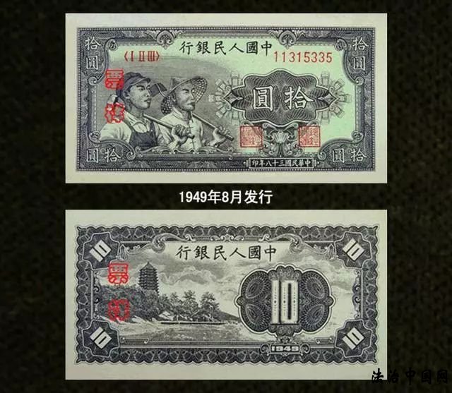 第一套人民币自1948年12月1日开始发行,一共有12种面额,62种版别,是目前版别最多的一套人民币。
