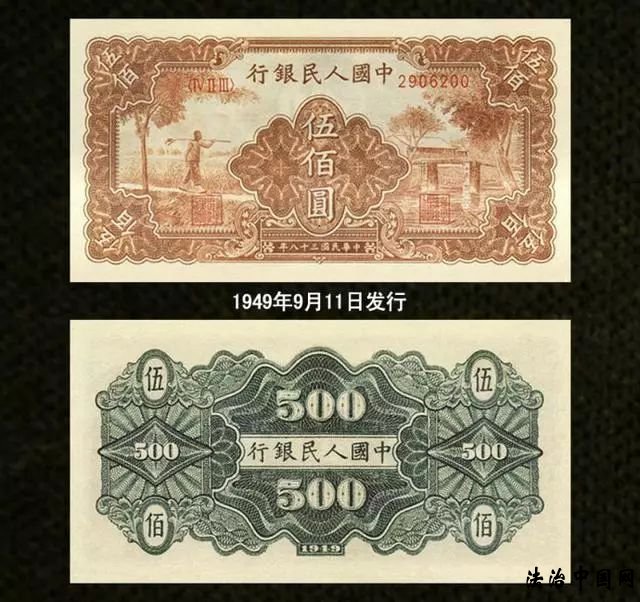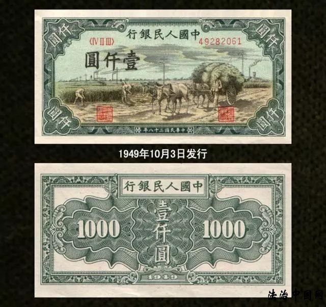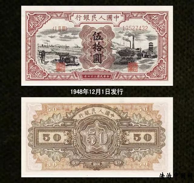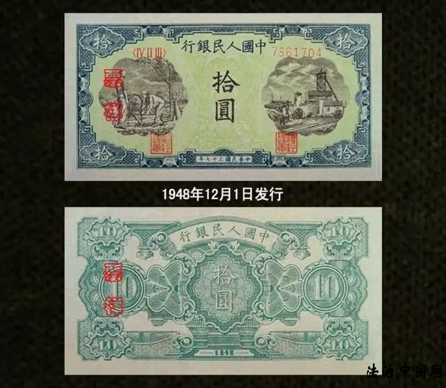 第一套人民币自1948年12月1日开始发行,一共有12种面额,62种版别,是目前版别最多的一套人民币。