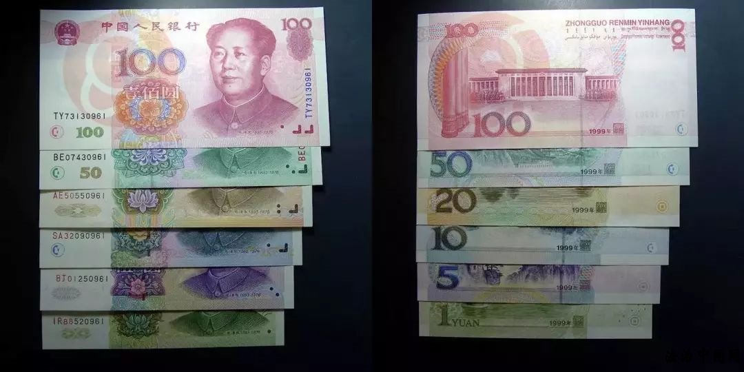 第五套人民币就是现在市场上流通的人民币,从1999年10月1日开始陆续发行,在我们的生活中使用非常活跃,相信大家都很熟悉。小易就不多介绍了。