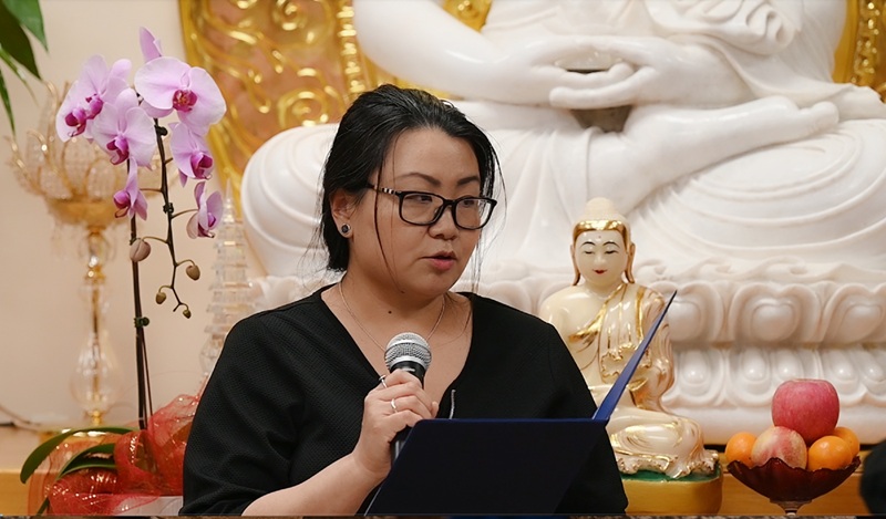安大略省省议员赵成俊特派代表米丽安·古(Ms. Miriam Ku)现场宣读证书。