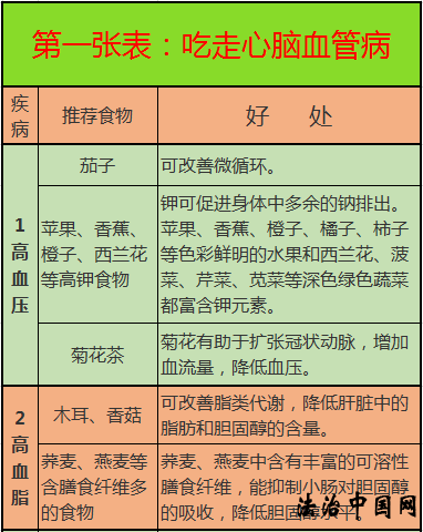 摘要:这10张表,啥病吃啥,一目了然,非常实用~ 预防心脑血管疾病,饮食管理非常重要。 科学地吃,可以帮助吃走八种心脑血管病 。 1 2 3 4 5 6 7 8 9 10 这 10 张表,太珍贵了,以前弄不懂的问题,现在一眼就能看懂!自己收藏好,再发给朋友看看吧! 来源:健康之