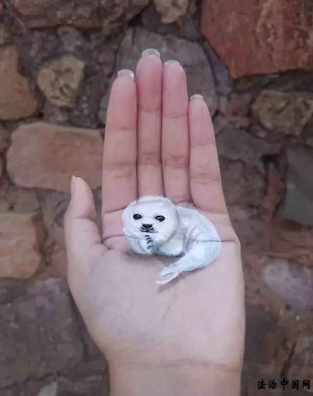 她每天花三到四个小时在手上画自己想象到的东西,各种动物啊什么的。使用丙烯颜料和白色中性笔绘制,手掌还自带3D效果。