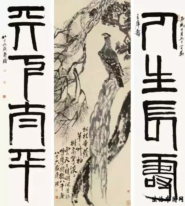 最贵中国名画:齐白石 | 《松柏高立图·篆书四言联》(4.255亿元人民币)