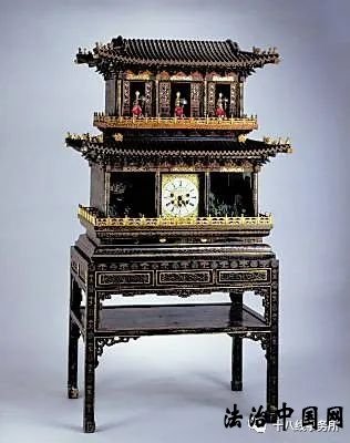 钟表之宝 彩漆描金楼阁式自开门群仙祝寿御制钟