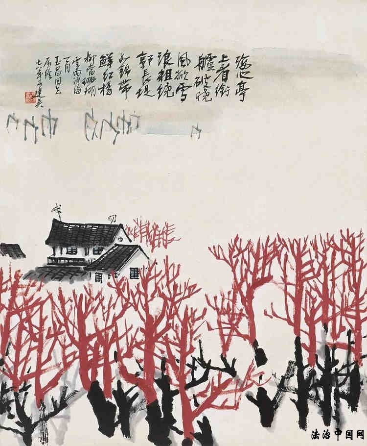他的艺术发展,每时每刻都在“逆水行舟”之中,他在进入传统之后,并没有固守传统的城池,而是努力寻求新的突破。50年代至60年代初,学术思想比较活跃,石鲁在西安带领大批热心中国画改革的老中青画家,为探索中国画的推陈出新“创造合乎新内容的新形式”,进行着勤奋的实践,开长安画派之先河。