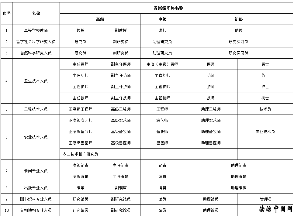 摘要:职称系列各层级名称都是什么?看这篇就行!(实用收藏) 职称体现了专业技术人才的 学术技术水平和专业能力 也关系着大家的 工资待遇、上升通道等等 职称系列各层级名称都是什么? 一起来看! 职称系列(专业)各层级名称 www.法治中国网.com 投稿热线:5729
